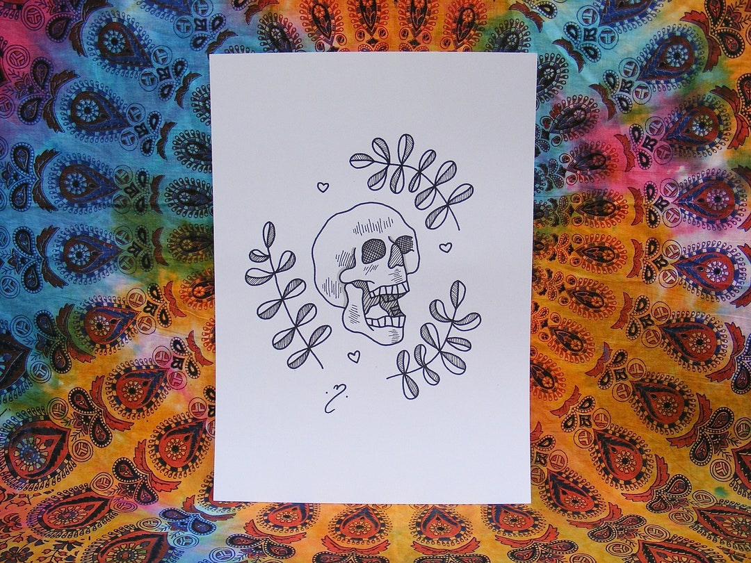 Traditional Tattoo Print Skull Design Print Linework Print Etsy